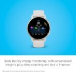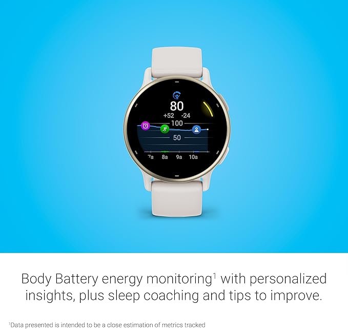 - Suivi santé : fréquence cardiaque, coach de sommeil, détection des siestes, rapport matinal, pas, cardio poignet, suivi du stress et de la respiration, Body Battery et bien plus