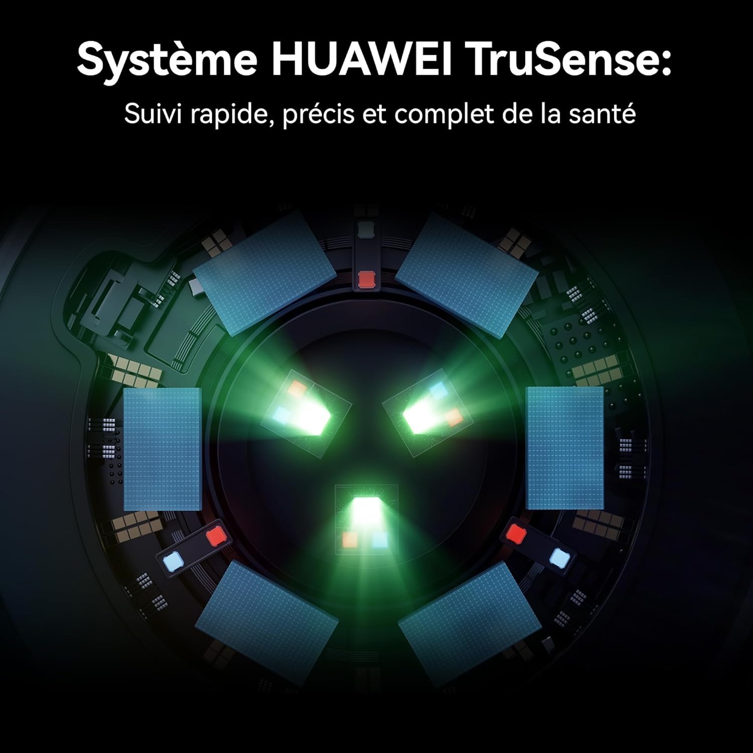 - 【Le must en matière de santé】: HUAWEI TruSense est désormais capable de surveiller six systèmes majeurs, dont les systèmes respiratoire, nerveux et de mouvement, afin de rendre la santé numérique plus accessible et plus complète pour tous.