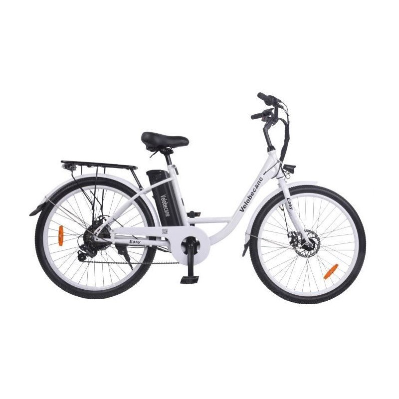 Vélo Électrique 26′ VELOBECANE-7 Vitesses-Freins À Disque-Autonomie 40km-Blanc